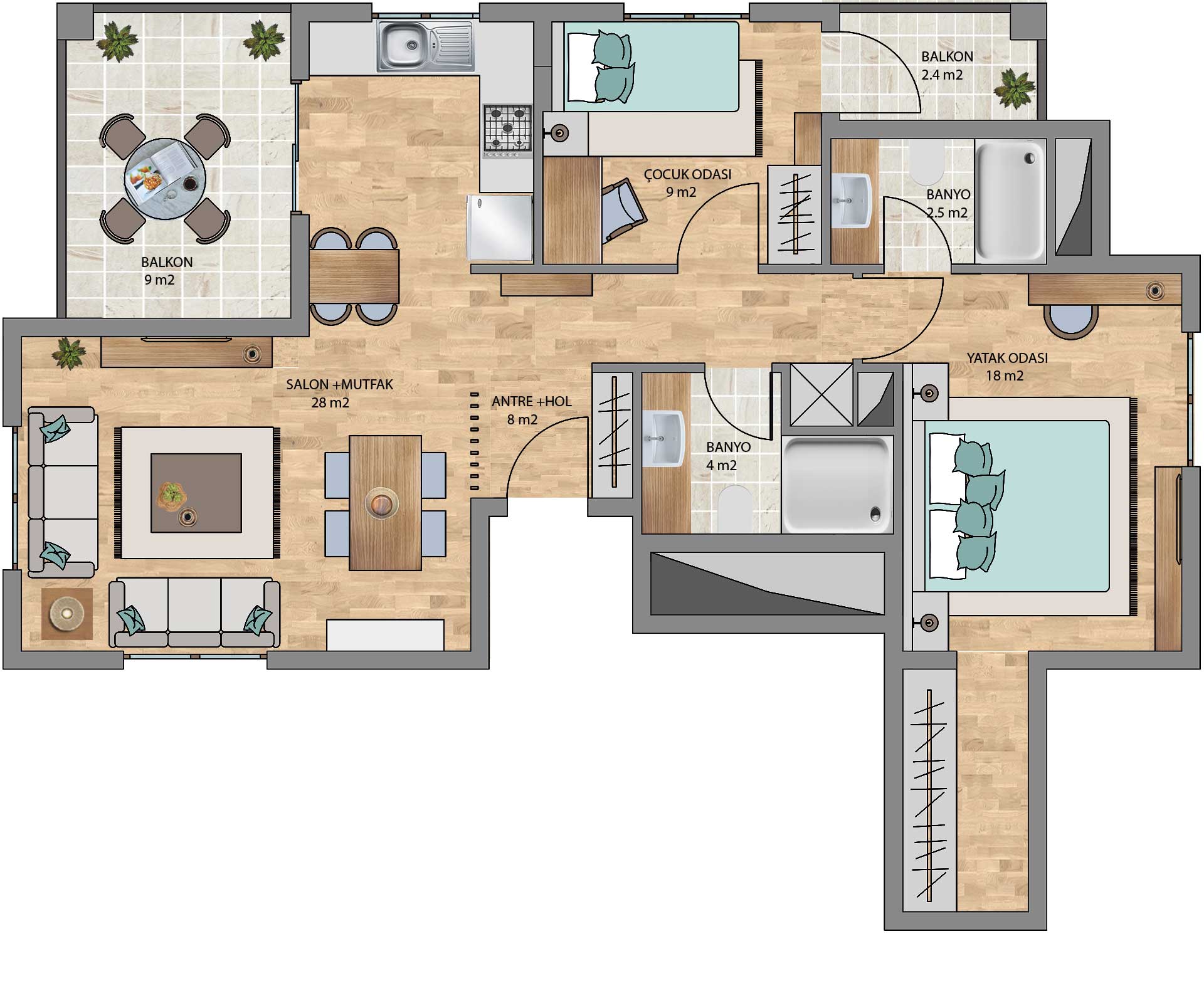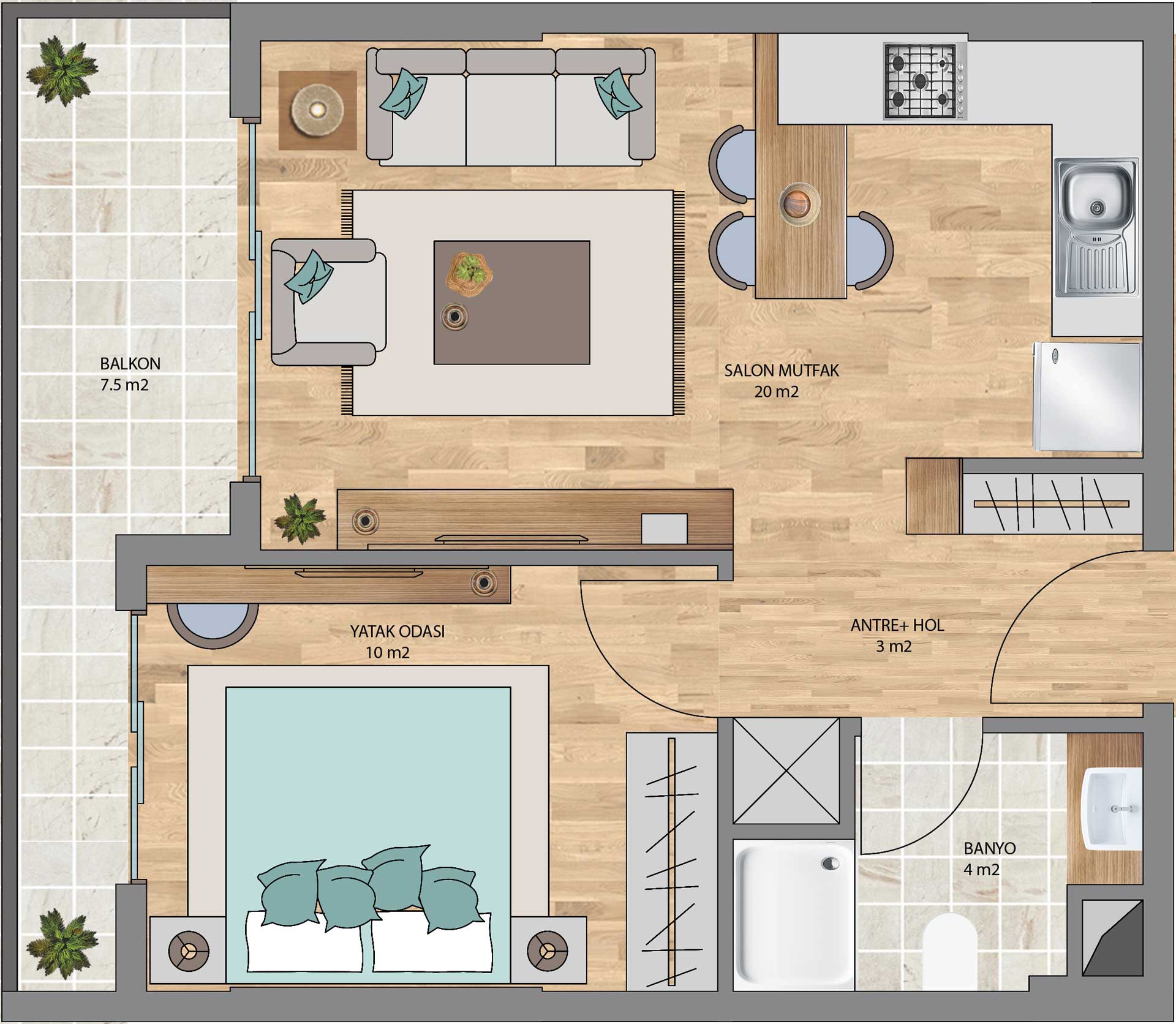 • 1+1 / 2+1 / 3+1 daire seçenekleri…